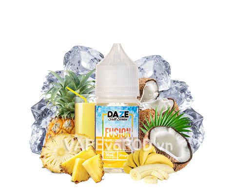 7 Daze Fusion Salt Iced Pineapple Coconut Banana 30ml là tinh dầu vape Mỹ saltnic vị cocktail nhiệt đới gồm vị dứa, dừa và chuối chín vàng cực hấp dẫn. Tinh dầu vape nicotine cao sử dụng ngon nhất với các loại máy vape pod system hoặc đầu đốt vape MTL chuyên dụng.