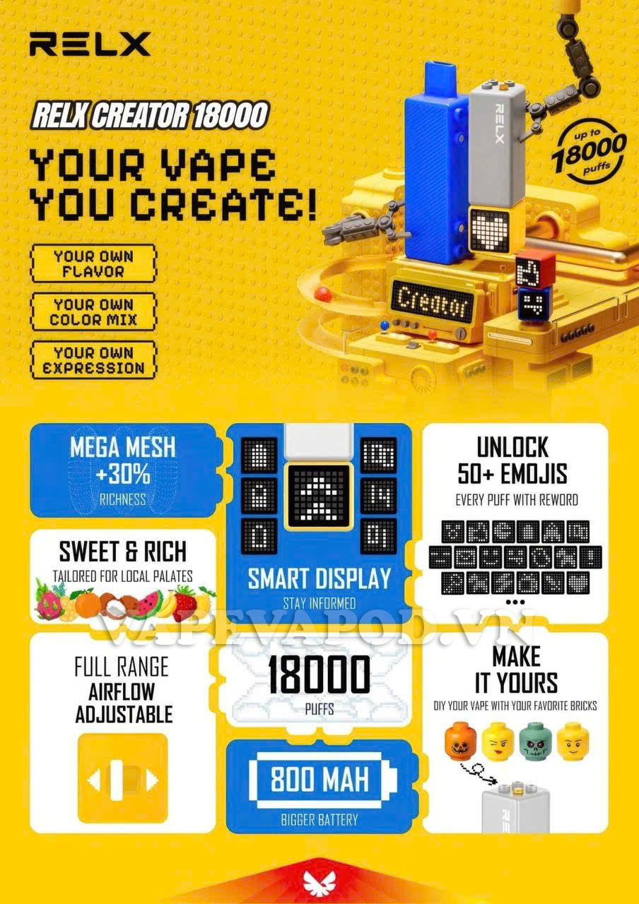 - Số Hơi Lớn: Với khả năng lên đến 18,000 hơi, bạn có thể sử dụng lâu dài mà không lo hết nhanh.