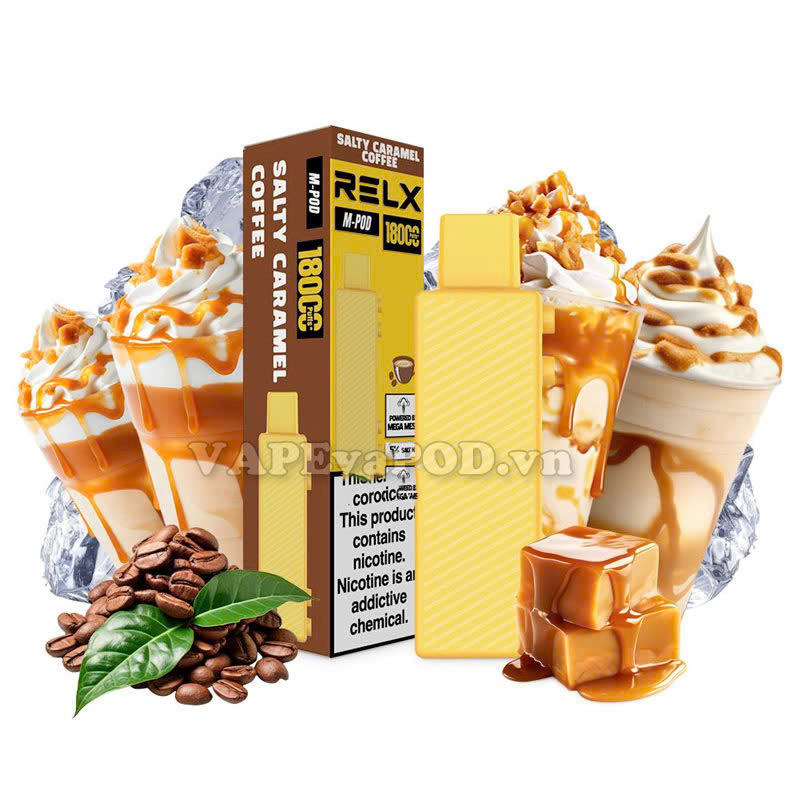 RELX là thương hiệu nổi tiếng trong làng vape với các dòng pod dùng một lần chất lượng và đa dạng về hương vị. Một trong những sản phẩm nổi bật của hãng là RELX M Pod Salty Caramel Coffee với số lượng hơi ấn tượng lên tới 18,000 hơi. Đây là lựa chọn hoàn hảo cho những ai yêu thích hương vị cà phê muối caramel độc đáo và phong phú, với trải nghiệm kéo dài, tiện lợi và phù hợp với người dùng bận rộn.