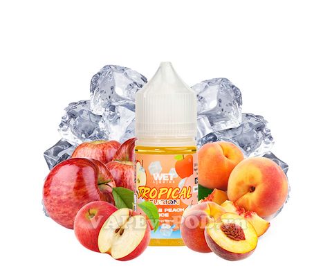 Wet Salt Tropical Fusion Apple Peach Ice 30ml - Tinh Dầu Vape Mỹ là tinh dầu vape Mỹ saltnic - nicotine cao vị táo đào lạnh sử dụng ngon nhất với các loại máy vape pod system hoặc đầu đốt vape MTL chuyên dụng. Sản phẩm có dung tích 30ml, đủ để bạn có thể thử nghiệm và tận hưởng hương vị tuyệt vời trong một thời gian dài.